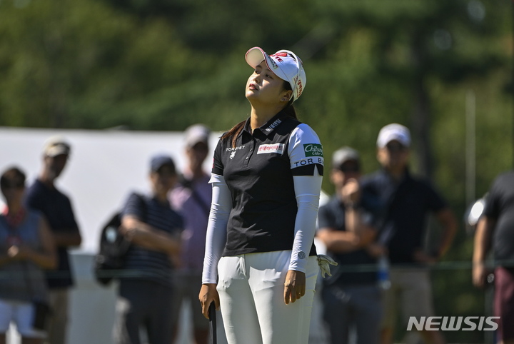 [오타와=AP/뉴시스] 최혜진이 28일(현지시간) 캐나다 오타와의 오타와헌트앤드골프클럽에서 열린 미국여자프로골프(LPGA)투어 CP 여자오픈 최종 라운드 4번 홀에서 버디를 놓친 후 아쉬워하고 있다. 전날 공동 선두였던 최혜진은 최종 합계 18언더파 266타로 선두에 1타 뒤진 공동 준우승을 차지했다. 2022.08.29.