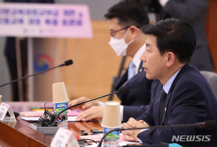 [서울=뉴시스] 김명원 기자 = 최상대 기획재정부 2차관이 7일 서울 종로구 정부서울청사에서 지방교육재정교부금 개편 관련 토론회에 참석해 인사말을 하고 있다. 2022.09.07. [email protected]