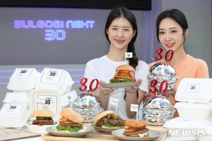 [서울=뉴시스] 권창회 기자 = 롯데리아가 22일 오전 불고기 버거 출시 30주년을 기념해 오픈한 서울 종로구 익선동 '불고기 랩 9222(BULGOGI LAB 9222)' 팝업스토어에서 '불고기 랩 9222'에서만 맛볼 수 있는 떡갈비 버거 등 4종을 선보이고 있다. 2022.09.22. [email protected]
