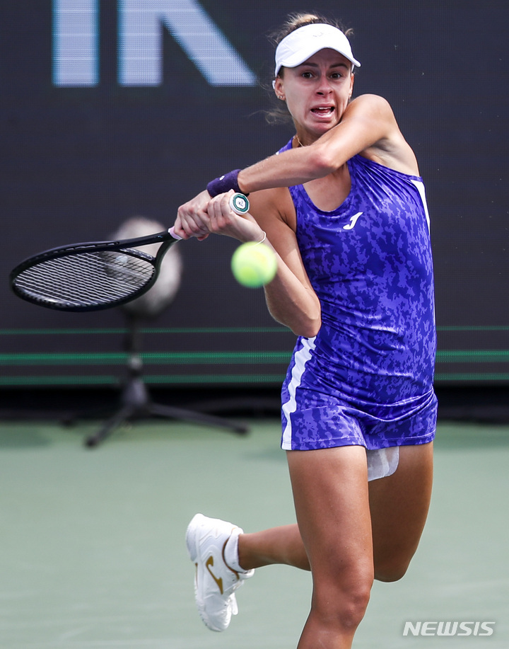 [서울=뉴시스] 정병혁 기자 = 22일 오후 서울 송파구 올림픽공원 테니스경기장에서 열린 2022 하나은행 WTA 투어 코리아오픈 단식 16강전, 마그다 리네트가 크리스티나 믈라데노비치를 상대로 경기하고 있다. 2022.09.22. [email protected]