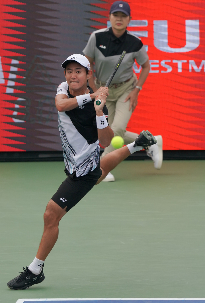 [서울=뉴시스] 조수정 기자 = 요시히토 니시오카가 1일 서울 송파구 올림픽공원 테니스코트에서 열린 ATP 250 유진투자증권 코리아오픈 테니스대회 단식 준결승전 알렉산더 코바세빅과 경기하고 있다. 결과는 세트스코어 2-1로 니시오카 결승 진출. (사진=유진투자증권 코리아오픈 대회 조직위원회 제공) 2022.10.01. [email protected] *재판매 및 DB 금지