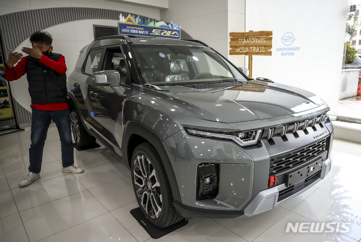 [서울=뉴시스] 정병혁 기자 = 5일 서울 강남구 쌍용장동차 강남논현전시장에 토레스가 전시되어 있다. 쌍용자동차가 9월에 내수 7675대, 수출 3647대 총 1만1322대를 판매했다고 밝혔다. 토레스 판매 증대에 힘입어 내수와 수출이 동반 상승했고, 올해 월간 최다 판매량을 기록했으며, 쌍용차의 9월 판매량은 전년 동월 대비 90.3% 증가했다. 1~9월 누적 판매량 역시 전년보다 29.4% 늘었다. 2022.10.05. [email protected]