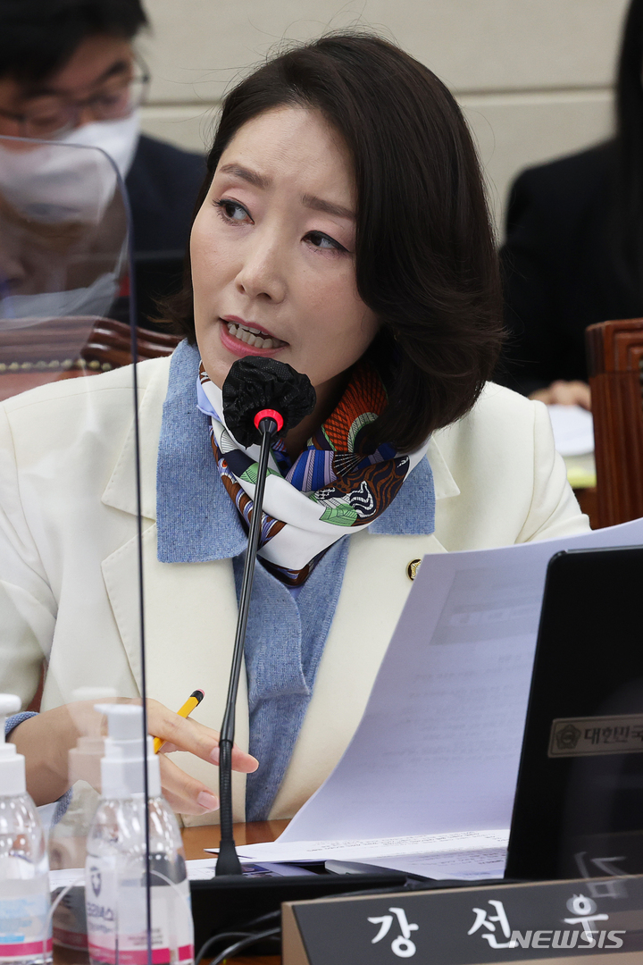 [서울=뉴시스] 김선웅 기자 = 강선우 더불어민주당 의원이 19일 오전 서울 여의도 국회 보건복지위원회에서 열린 국정감사 보건복지부 등에 대한 종합감사에서 질의를 하고 있다. (공동취재사진) 2022.10.20. [email protected]