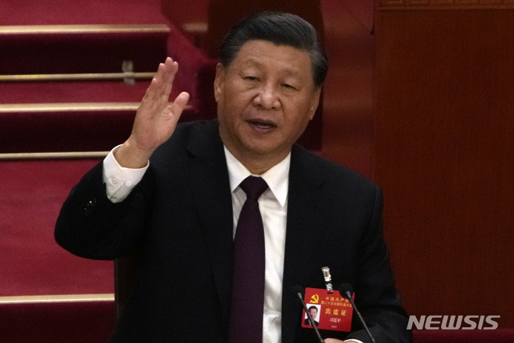 [베이징=AP/뉴시스] 시진핑 중국 국가주석이 22일 중국 베이징 인민대회당에서 열린 중국 공산당 제20차 전국대표대회 폐막식에 참석하고 있다. 2022.10.22.