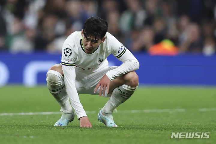 [런던=AP/뉴시스] 토트넘 홋스퍼의 손흥민이 26일(현지시간) 영국 런던의 토트넘 홋스퍼 스타디움에서 열린 2022-23 유럽축구연맹(UEFA) 챔피언스리그 조별리그 D조 5차전 스포르팅과의 경기하고 있다. 풀타임을 소화한 손흥민은 공격 포인트를 올리지 못했고 토트넘은 1-1 무승부를 거두며 조 선두를 유지했지만 16강 진출을 확정하진 못했다. 2022.10.27.