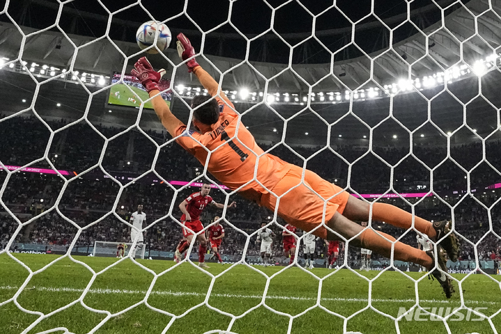 [알라얀=AP/뉴시스] 웨일스의 개러스 베일이 21일(현지시간) 카타르 알라얀의 아흐마드 빈 알리 스타디움에서 열린 2022 카타르 월드컵 조별리그 B조 1차전 미국과의 경기 후반 37분 PK로 동점 골을 넣고 있다. 웨일스는 미국과 1-1로 비기며 B조 공동 2위에 자리했다. 2022.11.22.