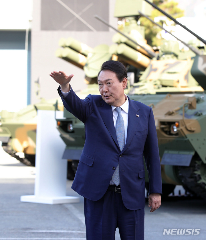 방산 장비 관람하는 윤석열 대통령