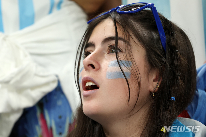 [루사일(카타르)=뉴시스] 백동현 기자 = 26일(현지시간) 카타르 루사일 스타디움에서 열린 2022 카타르 월드컵 조별리그 C조 2차전 아르헨티나와 멕시코의 경기, 한 아르헨티나 축구 팬이 응원하고 있다. 2022.11.27. [email protected]