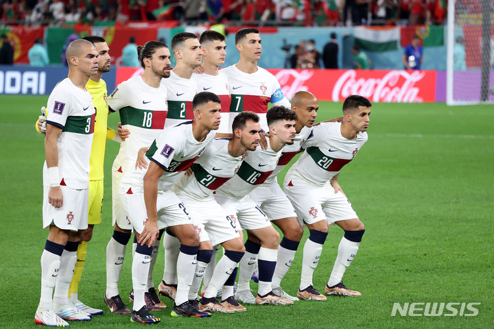 [알라이얀(카타르)=뉴시스] 백동현 기자 = 2일(현지시간) 카타르 알라이얀 에듀케이션 시티 스타디움에서 열린 2022 카타르 월드컵 H조 최종 3차전 대한민국과 포르투갈의 경기, 포르투갈 선발 출전 선수들이 기념촬영하고 있다. 2022.12.03. [email protected]