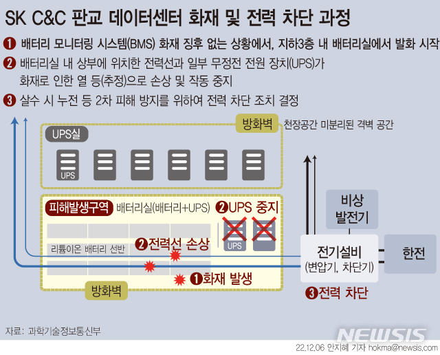 [서울=뉴시스] 지난 10월 발생한 카카오 먹통 대란은 SK C&C 판교 데이터센터의 부실한 화재대응시스템에 원인이 있었던 것으로 정부 조사결과 밝혀졌다.
