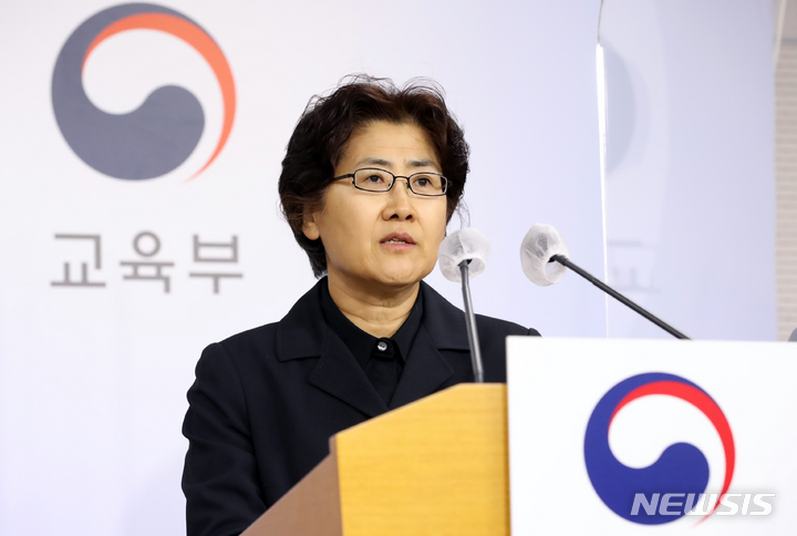 [세종=뉴시스] 강종민 기자 = 박정 2023학년도 대학수학능력시험 채점위원장이 8일 세종시 정부세종청사에서 수능 채점 결과를 발표하고 있다. 2022.12.08. [email protected]