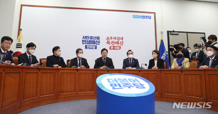 [서울=뉴시스] 추상철 기자 = 이재명 더불어민주당 대표가 15일 오후 서울 여의도 국회에서 열린 '국회의장 중재안 수용'과 관련 기자회견에서 발언하고 있다. 2022.12.15. [email protected]