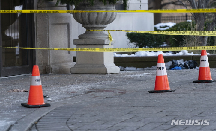 [본=AP/뉴시스] 19일(현지시간) 캐나다 온타리오주 본에 있는 한 콘도에서 총격이 발생한 후 현장 주변이 통제되고 있다. 전날 이곳에서 발생한 총격으로 5명이 숨지고 프란체스코 빌리(73)라는 용의자는 경찰의 총격으로 숨졌다. 2022.12.20.