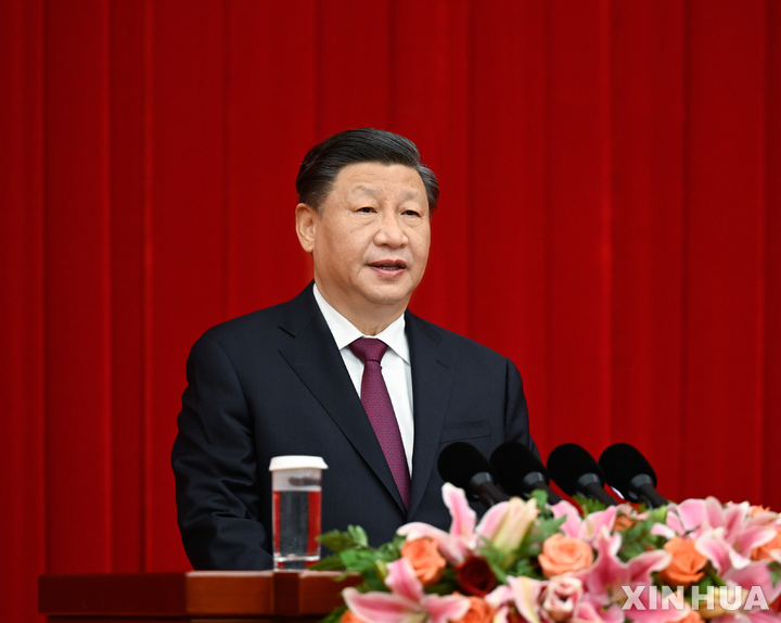 [베이징=신화/뉴시스] 시진핑 중국 국가주석이 30일 중국 베이징에서 열린 전국인민정치협상회의(CPPCC) 전국위원회 주최 신년회에 참석해 연설하고 있다. 시 주석은 "국민의 생명과 건강을 가장 잘 보호하고 경제·사회 발전에 미치는 영향을 최소화하기 위해 '코로나 통제전략'을 최적화했다"라고 말했다. 2022.12.31.