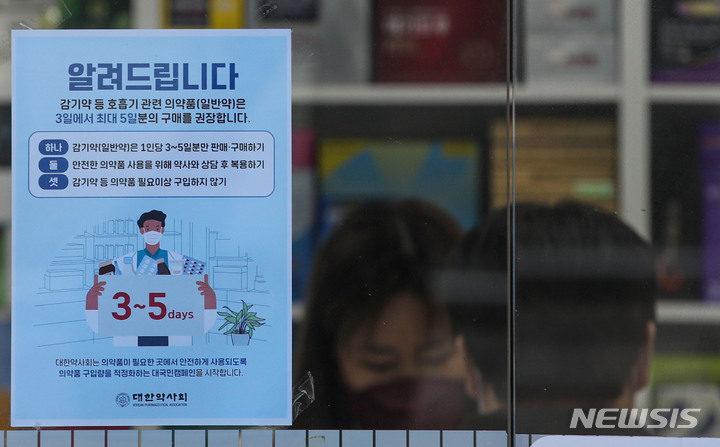 [서울=뉴시스] 권창회 기자 = 1일 오전 서울 중구 한 약국에 감기약 수급 안정을 위한 3~5일치 판매수량 제한 안내문이 붙어있다. 정부는 중국 코로나19 유행으로 국내 감기약 품귀 현상이 우려되자 약국에서 판매하는 감기약 수량을 제한하기로 하고 다음 주 중 시행 시점과 대상, 판매 제한 수량 등을 정하기로 했다. 2023.01.01. [email protected]