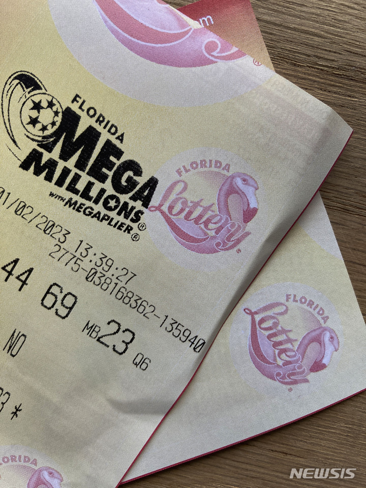 [서프사이드=AP/뉴시스] 2일(현지시간) 미 플로리다주 서프사이드의 한 매장에서 메가밀리언 복권이 판매되고 있다. 이번 주 화요일 추첨하는 메가밀리언 복권의 누적 당첨금은 7억8천5백만 달러(한화 약 1조20억 원)로 추정된다. 2023.01.03.