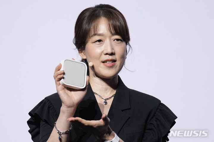 [라스베이거스=AP/뉴시스] 정재연 삼성전자 디바이스플랫폼 센터 부사장이 4일(현지시간) 미 네바다주 라스베이거스의 만달레이베이 호텔에서 세계 최대 가전·IT 전시회 'CES 2023'을 하루 앞두고 열린 프레스 컨퍼런스에서 '스마트싱스 스테이션'을 소개하고 있다. '스마트싱스'는 사용자가 스마트 홈 기능을 쉽고 빠르게 사용할 수 있게 지원하는 것으로 삼성전자 제품뿐만 아니라 업계 최신 사물인터넷(IoT) 통신 규격인 매터(Matter)를 지원하는 다양한 제품들을 연결할 수 있다. 2023.01.05.