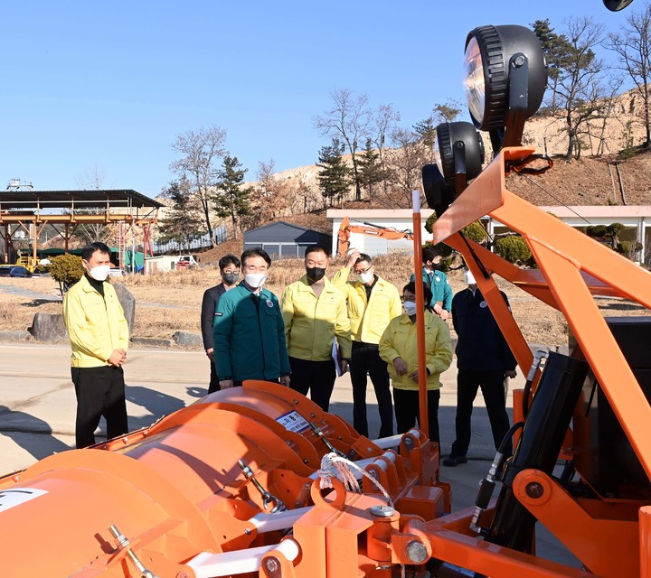 [서울=뉴시스] 김선웅 기자 = 김성호 행정안전부 재난안전관리본부장이 12일 충남 건설본부 동부사무소를 방문해 제설자재 및 장비 현황을 점검하고 있다. (사진=행정안전부 제공) 2023.01.12. [email protected] *재판매 및 DB 금지