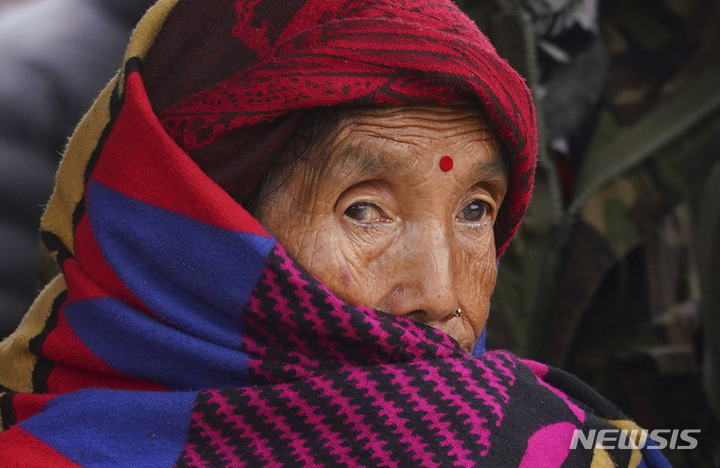 [포카라=AP/뉴시스] 16일(현지시간) 네팔 포카라에서 한 할머니가 비행기 사고 희생자들의 시신이 안치된 병원 밖에서 소식을 기다리고 있다. 사망자 신원 확인 명단에는 한국인 탑승자 40대 유 모 씨가 포함된 것으로 알려졌다. 2023.01.16.
