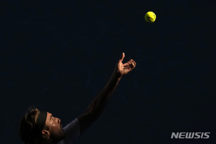 [멜버른=AP/뉴시스] 스테파노스 치치파스(4위·그리스)가 27일(현지시간) 호주 멜버른의 로드 레이버 아레나에서 열린 2023 호주 오픈 남자 단식 준결승 카렌 하차노프(20위·러시아)와 경기하고 있다. 치치파스가 세트 스코어 3-1(7-6<7-2> 6-4 6-7<6-8> 6-3)로 물리치고 결승에 올라 노바크 조코비치(1위·세르비아)-토미 폴(35위·미국) 승자와 패권을 다투게 됐다. 2023.01.27.