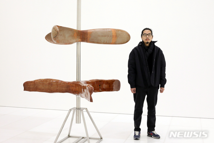 [서울=뉴시스] 박진희 기자 = 아라리오갤러리는 2023년 첫 전시이자 서울 지점의 이전 재개관으로 작가 권오상, 이동욱, 김인배, 안지산, 노상호 참여하는 첫 그룹전 '낭만적 아이러니 Romantic Irony'를 서울 종로구 원서동 갤러리에서 개막하고 작가 김인배의 작품을 전시하고 있다. 이번 전시는 독일 낭만주의의 이론적 기수 프리드리히 슐레겔(F. Schlegel)이 정립한 ‘낭만적 아이러니(Romantic Irony)’라는 양극에 위치한 사유들을 오가면서 변화하는 과정 그 자체를 긍정하고 주목하는 사유의 한 방법론 속에서 기획되었다. 2023.01.31. [email protected]