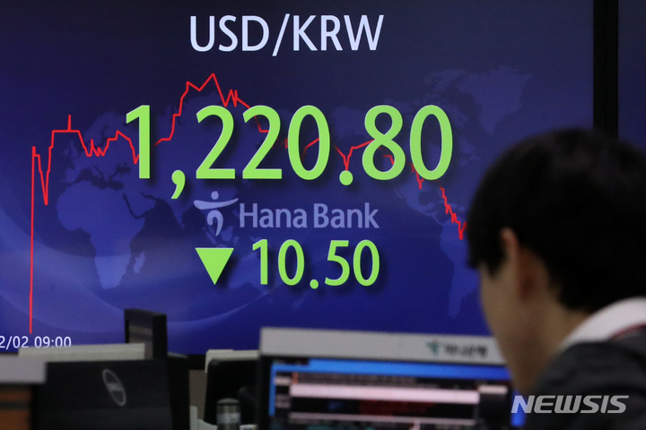 [서울=뉴시스] 조성우 기자 = 코스피가 전 거래일(2449.80)보다 32.14포인트(1.31%) 오른 2481.94에 개장한 2일 오전 서울 중구 하나은행 딜링룸에서 딜러들이 업무를 보고 있다. 코스닥지수는 전 거래일(750.96)보다 8.57포인트(1.14%) 상승한 759.53에 거래를 시작했다. 원·달러 환율은 전 거래일(1231.3원)보다 11.3원 내린 1220.0원에 출발했다. 2023.02.02. [email protected]