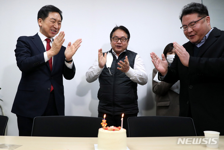 보좌관 생일 축하해 주는 김기현 당 대표 후보