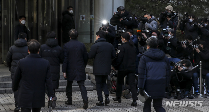 [서울=뉴시스] 정병혁 기자 = 자녀입시 비리 및 유재수 감찰무마 등 혐의를 받는 조국 전 법무부 장관이 3일 오후 서울 서초구 서울중앙지방법원에서 열린 선고 공판에 출석하고 있다. 2023.02.03. [email protected]