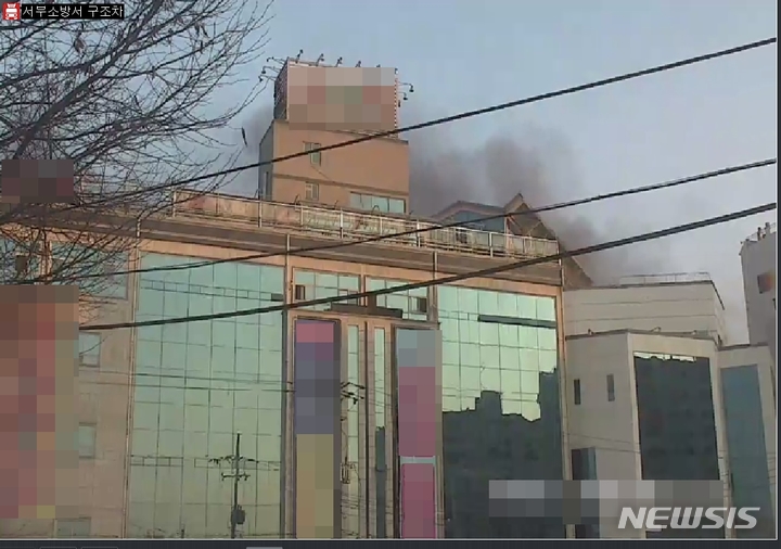 [청주=뉴시스] 임선우 기자 = 4일 오전 8시7분께 충북 청주시 서원구 분평동 한 사우나시설에서 불이 나 20대 남성 1명이 1도 화상을 입고 병원으로 이송됐다. 나머지 92명은 무사히 대피했다. 불은 건물 일부를 태운 뒤 1시간여 만에 진화됐다. (사진=충북소방본부 제공) 2023.02.04. [email protected]