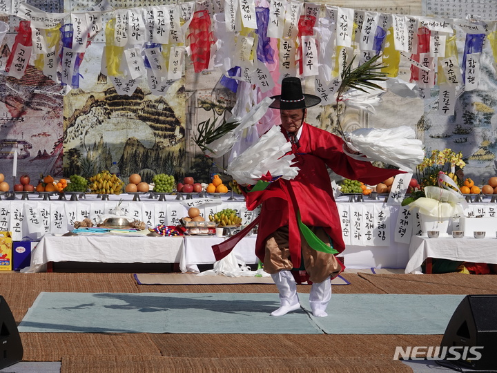 [제주=뉴시스] 오영재 기자 = 4일 오전 제주목 관아에서 열린 '탐라국 입춘굿'에서 제주큰굿보존회가 초감제를 하고 있다. 2023.02.0.4. [email protected]