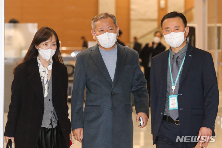 [인천공항=뉴시스] 권창회 기자 = 이상민 행정안전부 장관이 5일 오후 인천국제공항 제2여객터미널에서 미국 재난관리 정책 방문일정을 마치고 귀국하고 있다. 2023.02.05. [email protected]