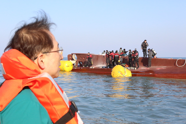 해수부 장관, 신안 청보호 전복사고 수색 현장 점검