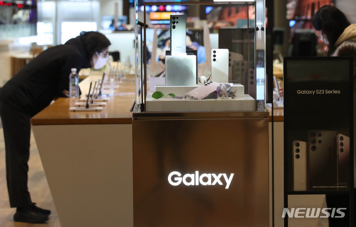 [서울=뉴시스] 조수정 기자 = 삼성전자와 SK텔레콤, KT, LG유플러스 등 이동통신 3사의 갤럭시 S23 시리즈 사전예약이 시작된 7일 서울 서초구 삼성 딜라이트샵에서 방문객들이 갤럭시 S23시리즈를 살펴보고 있다. 2023.02.07. [email protected]