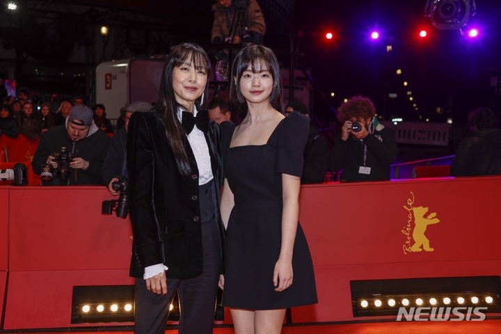 [베를린=AP/뉴시스] 영화 '길복순'의 배우 전도연(왼쪽)과 김시아가 18일(현지시간) 독일 베를린에서 열리고 있는 제73회 베를린국제영화제 '길복순' 시사회에 참석해 포토타임을 갖고 있다. 2023.02.19.