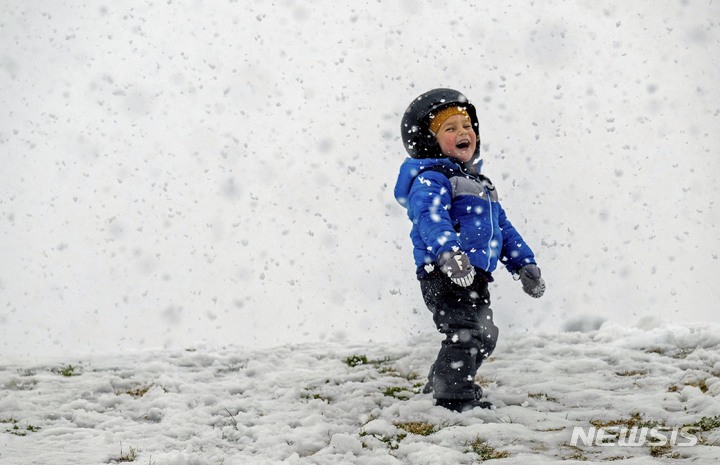 [유카이파=AP/뉴시스] 23일(현지시간) 미 캘리포니아주 유카이파의 공원에서 캐멀 람(3)이라는 아이가 내리는 눈을 맞으며 즐거워하고 있다. 겨울 폭풍이 미 북서부를 강타해 기록적인 폭설이 내리며 항공기 결항과 정전, 휴교령이 잇따르고 외출 자제 경보가 발령됐다. 2023.02.24.