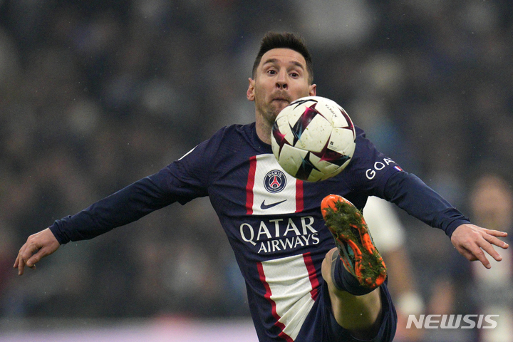 [마르세유=AP/뉴시스] 파리 생제르맹(PSG)의 리오넬 메시가 26일(현지시간) 프랑스 마르세유의 스타드 벨로드럼에서 열린 2022~23시즌 프랑스 리그1 25라운드 마스레유와의 경기 중 공을 차고 있다. 메시는 전반 29분 팀의 두 번째 골을 넣으며 유럽 5대리그 소속 선수 중 처음으로 클럽 경기 통산 700득점의 대기록을 세웠다. 2023.02.27.