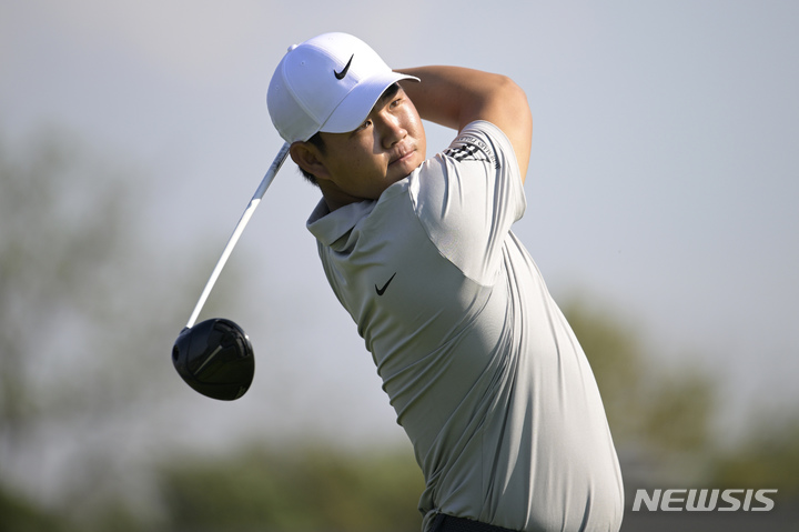 [올랜도=AP/뉴시스] 김주형이 3일(현지시간) 미 플로리다주 올랜도의 베이 힐 클럽 앤 로지에서 열린 미국프로골프(PGA) 투어 아널드 파머 인비테이셔널 2라운드 16번 홀에서 티샷하고 있다. 전날 공동 51위였던 김주형은 중간 합계 2언더파 142타, 공동 20위로 순위를 끌어올렸다. 2023.03.04.