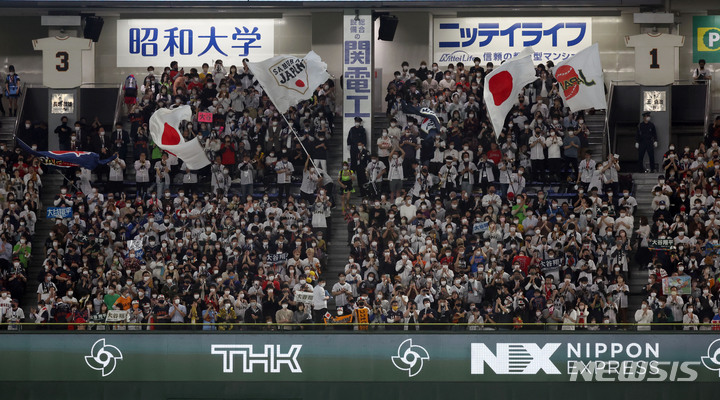 [도쿄=뉴시스] 김선웅 기자 = 9일 일본 도쿄돔에서 열린 월드베이스볼클래식(WBC) 2023 B조 일본과 중국의 경기, 일본 야구팬들이 응원을 하고 있다. 2023.03.09. [email protected]