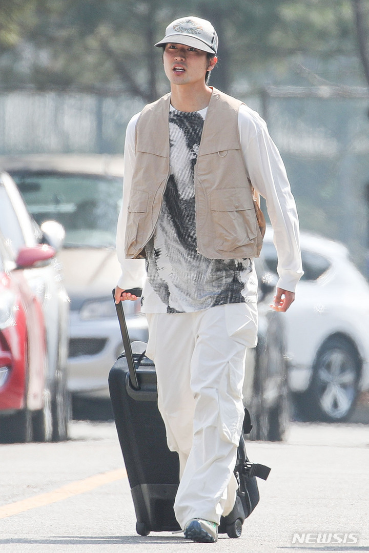 [파주=뉴시스] 권창회 기자 = 축구 국가대표팀 조규성이 트레이닝센터(NFC)로 입소하고 있다. 위르겐 클린스만 감독이 지휘하는 축구 국가대표팀은 오는 24일과 28일 콜롬비아와 우루과이랑 평가전을 갖는다. 2023.03.20. [email protected]