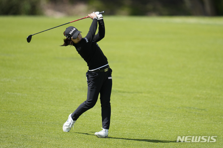 [팔로스 버디스=AP/뉴시스] 이미향이 30일(현지시간) 미 캘리포니아주 팔로스 버디스 골프클럽에서 열린 미국여자프로골프(LPGA)투어 디오임플란트 LA오픈 첫날 16번 페어웨이에서 샷하고 있다. 이미향은 6언더파 단독 선두로 첫날을 마쳤다. 2023.03.31.