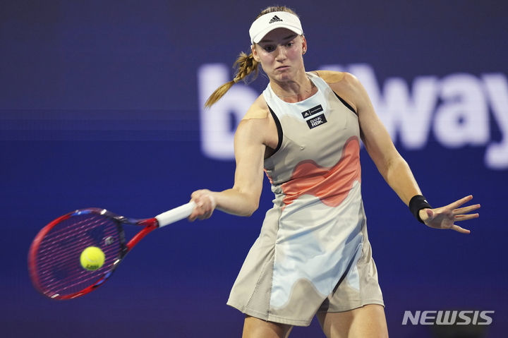 [마이애미=AP/뉴시스] 엘레나 리바키나(7위·카자흐스탄)가 30일(현지시간) 미 플로리다주 마이애미 가든스에서 열린 여자프로테니스(WTA) 투어 마이애미오픈 단식 준결승 제시카 페굴라(3위·미국)와 경기하고 있다. 올해 BNP 파리바오픈 우승자인 리바키나가 페굴라를 2-0(7-3 6-4)으로 꺾고 연승 행진을 이어가며 결승에 올랐다. 2023.03.31.