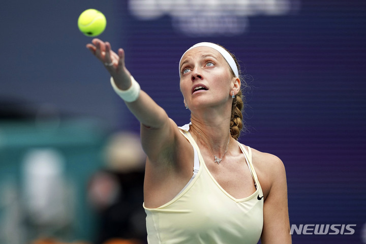 [마이애미=AP/뉴시스] 페트라 크비토바(12위·체코)가 지난달 31일(현지시간) 미 플로리다주 마이애미 가든스에서 열린 여자프로테니스(WTA) 투어 마이애미오픈 단식 준결승전에서 소라나 크르스테아(74위·루마니아)와 경기하고 있다. 크비토바가 2-0(7-5 6-4)으로 승리하고 결승에 올라 엘레나 리바키나(7위·카자흐스탄)와 우승을 다툰다. 2023.04.01.