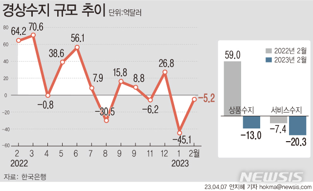 [그래픽] 2월 경상수지 5.2억 달러 적자