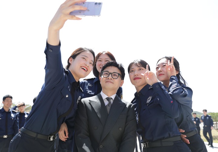 [서울=뉴시스] 한동훈 법무부 장관이 19일 충북 진천 법무연수원에서 교정공무원들과 기념촬영 하고 있다. (사진=법무부 제공) 2023.04.19. [email protected] *재판매 및 DB 금지