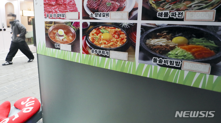 [서울=뉴시스] 최진석 기자 = 비빔밥·냉면 서울 지역 판매 가격 평균이 상승하며 1만원 돌파했다. 지난 19일 한국소비자원 가격정보 종합포털인 '참가격'에 따르면, 지난 3월 비빔밥의 가격은 8.6% 올라 1만192원, 냉면의 가격은 7.3% 올라 1만692원으로 나타났다. 사진은 20일 서울 중구 명동의 한 식당에 메뉴를 알리는 안내문에 냉면과 돌솥비빔밥등의 가격이 가려져 있다. 2023.04.20. [email protected]