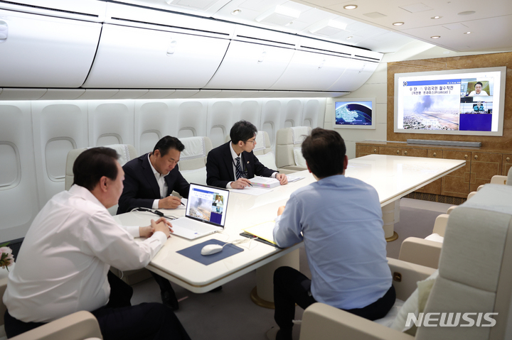 윤석열 대통령 '전용기서 수단 교민 구출 작전 지휘'