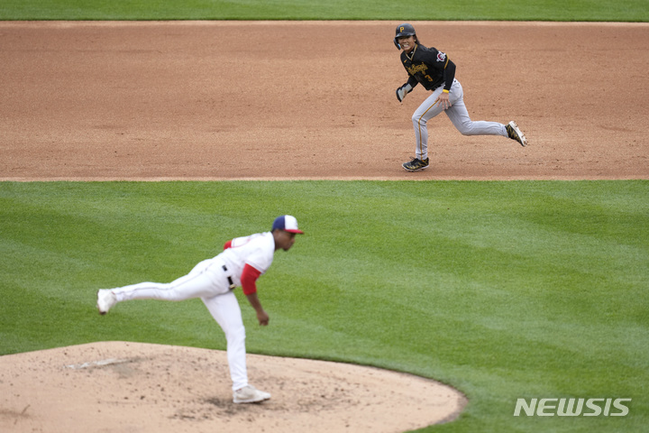 [워싱턴=AP/뉴시스] 피츠버그 파이어리츠의 배지환이 지난달 30일(현지시간) 미국 워싱턴DC의 내셔널스파크에서 열린 2023 메이저리그 워싱턴 내셔널스와 경기 3회 초 안타로 진루 후 2루를 훔치고 있다. 배지환은 4타수 1안타 1득점을 기록했고 팀은 2-7로 패했다. 2023.05.01.