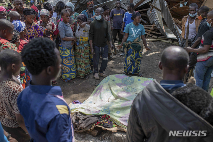 [냐무쿠비=AP/뉴시스] 6일(현지시간) 콩고민주공화국 사우스키부주 냐무쿠비 마을 주민들이 홍수로 숨진 희생자 시신을 확인하고 있다. 폭우에 따른 홍수와 산사태로 지금까지 약 200명이 숨진 것으로 나타났으며 펠릭스 치세케디 대통령은 오는 8일을 국가 애도의 날로 선포했다. 2023.05.07.