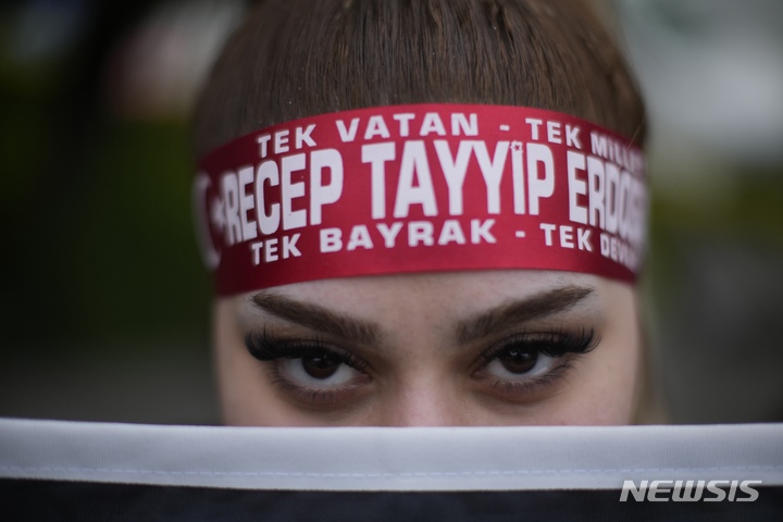 강한 눈빛 뿜는 에르도안 대통령 지지자