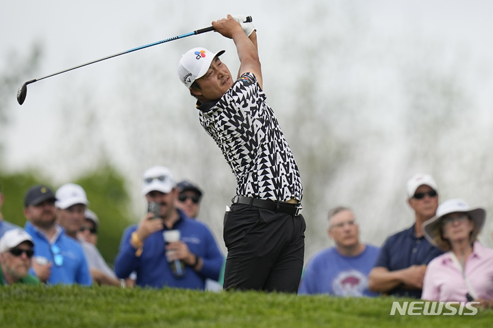 [로체스터=AP/뉴시스] 이경훈이 19일(현지시각) 미 뉴욕주 로체스터의 오크힐CC에서 열린 미국프로골프(PGA) 챔피언십 골프대회 2라운드 13번 홀에서 티샷 후 타구를 바라보고 있다. 이경훈은 중간 합계 1오버파 141타 공동 19위를 기록했다. 2023.05.20.